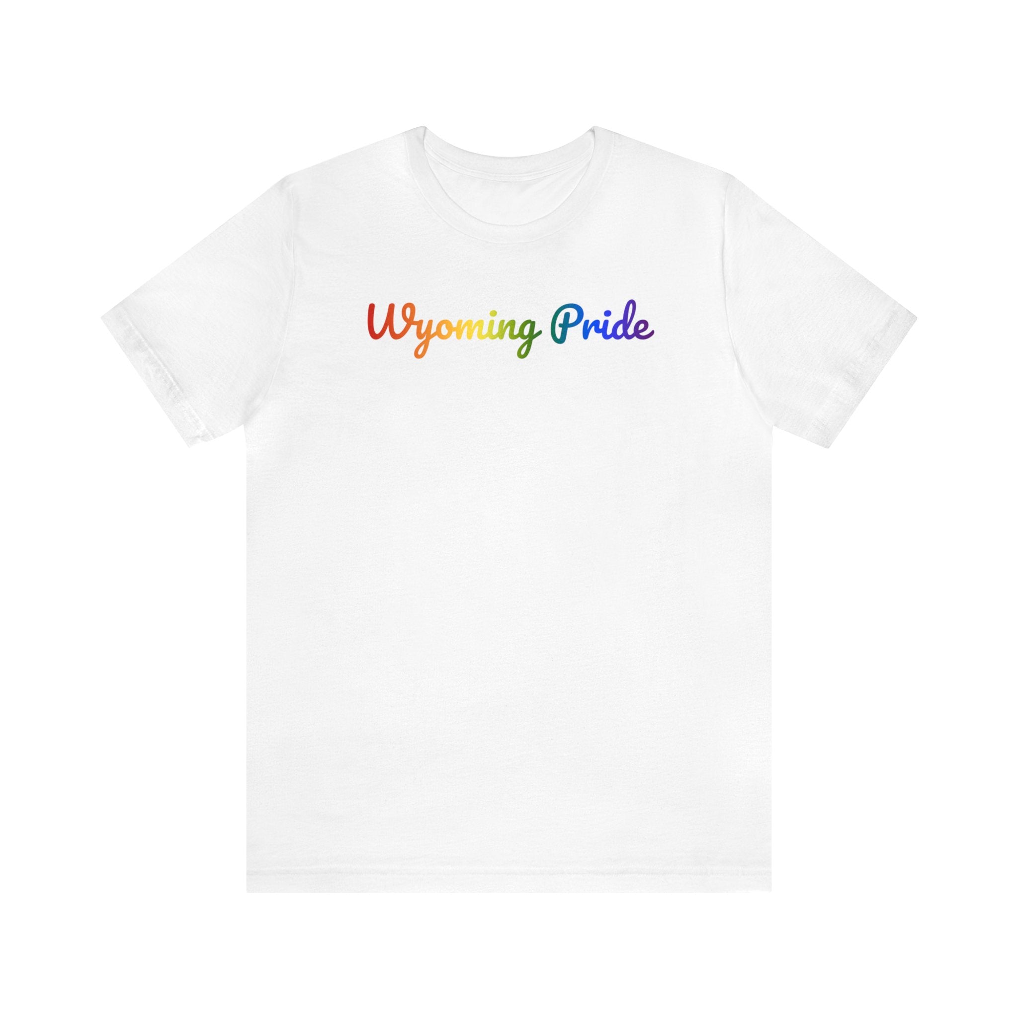 Wyoming Pride T-Shirt: Flowing Cursive Design with LGBTQ+ Gradient