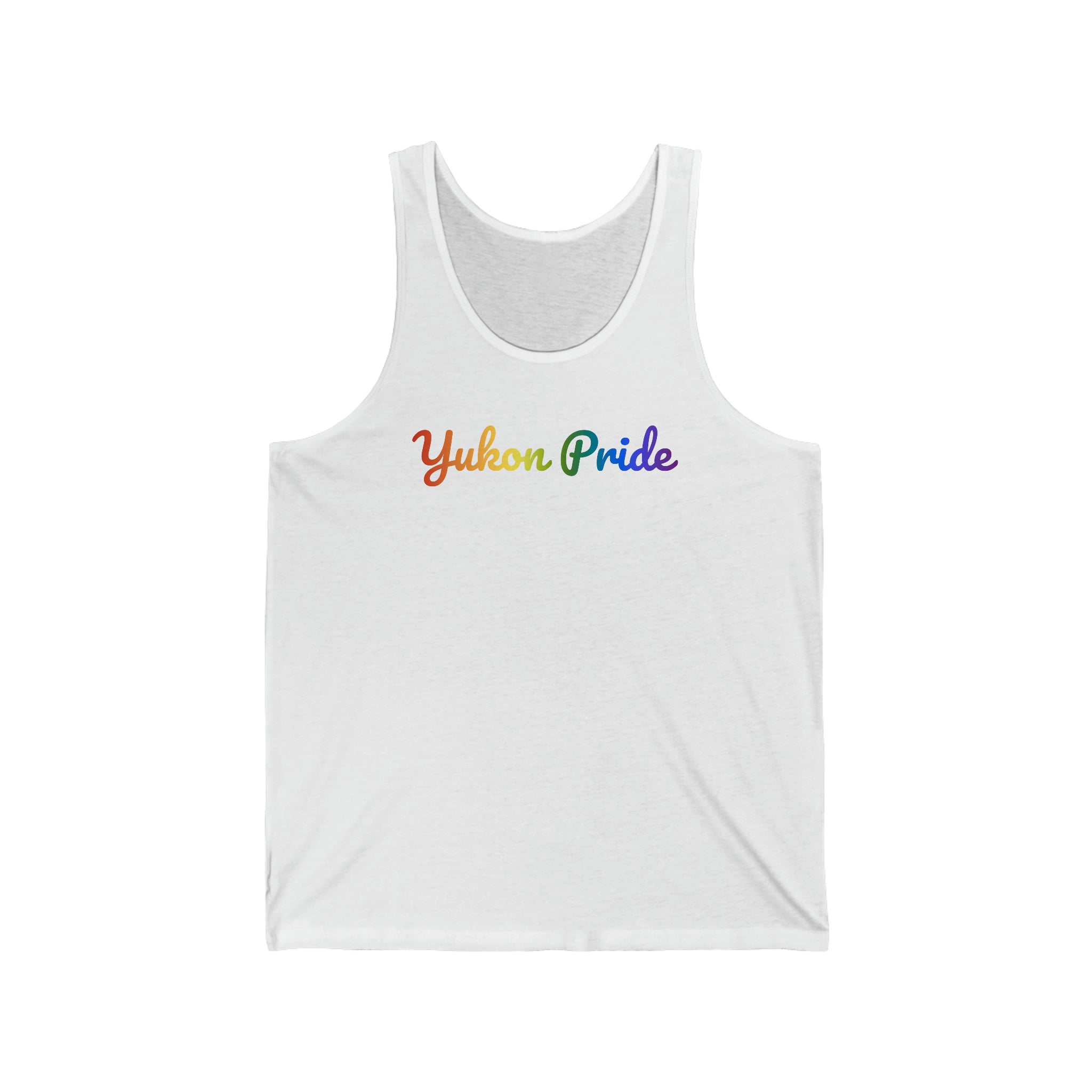 Yukon Pride Tank Top: Flowing Cursive Design with LGBTQ+ Gradient